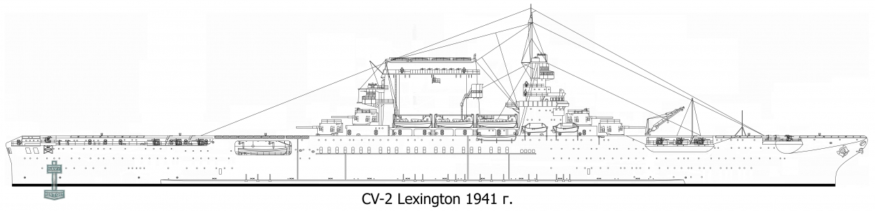 «CV-2 Lexington» - авианосец военно-морского флота США, головной корабль одноименного класса кораблей. Изначально строился в качестве линейного крейсера, однако, после Вашингтонского соглашения 1922 г США получили право достроить его в качестве авианосца. Корабль был назван в честь сражения при Лексингтоне 1775 г, перового вооруженного столкновения в ходе Войны за независимость США.