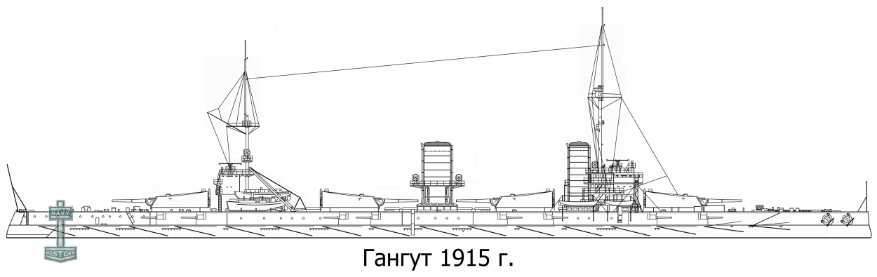 После вступления в строй в декабре 1914 г линкор «Гангут» был зачислен в состав 1-й бригады линейных кораблей и находился на внутреннем рейде Гельсингфорса. Основная задача 1-й бригады заключалась – не допустить прорыва германских кораблей в Финский залив. Однако германский флот таких попыток не предпринимал и в октябре 1914 г, 1-я бригада получила новый приказ, готовиться к встречному бою. При этом разрешить действовать новым линкорам класса «Севастополь» в Балтийском море, могла только Ставка.